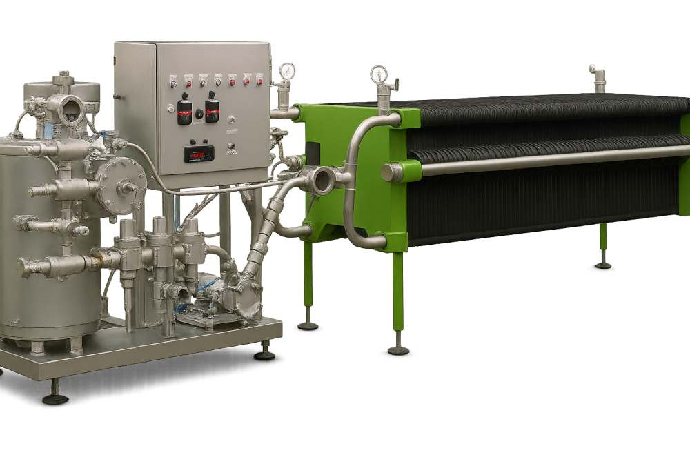 • разжим фильтр-пресса, промывка опорного картона при повторном его использовании.